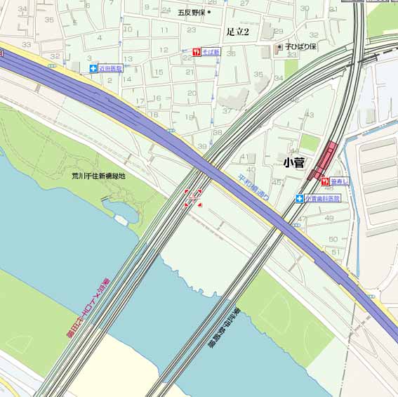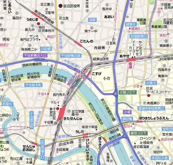 その場合は、梅島駅周辺のパーキングで駐車し、小菅駅まで来て頂く方法になります。