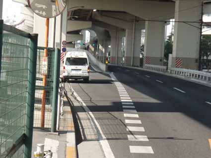 白いワゴンが停車している先が、4号線 上野方面ですが、