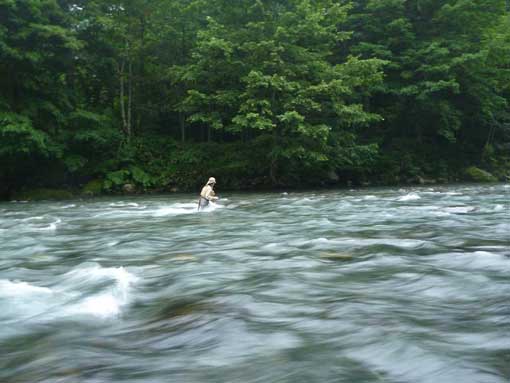 彼は昨年、初めての渓流挑戦で、忠別川へ来て以来、フライでの渓流は全く行っていなかった事が、現地に来てから解ったのです。