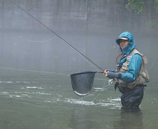 そして、下流から魚を引っ張り、