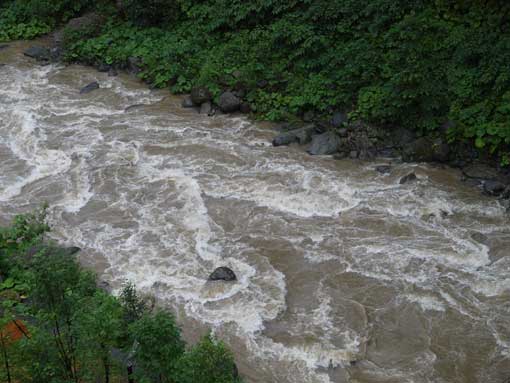翌朝川を見ると大洪水!