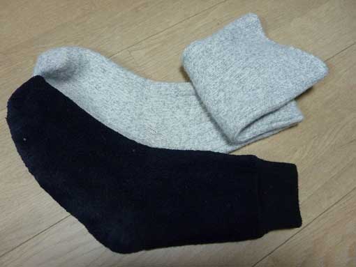 今回ウェーダーの中は、 スキー用のウールの超厚手のハイソックス そして、 発熱素材の超厚手のソックス2枚履きなのです。 |