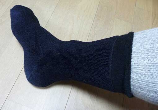 全体的に細めに見えるので、こんなにソックスを履いたら、足首が通らないと思われましたが、全く心配なし! 気持ちよく履け、快適! |